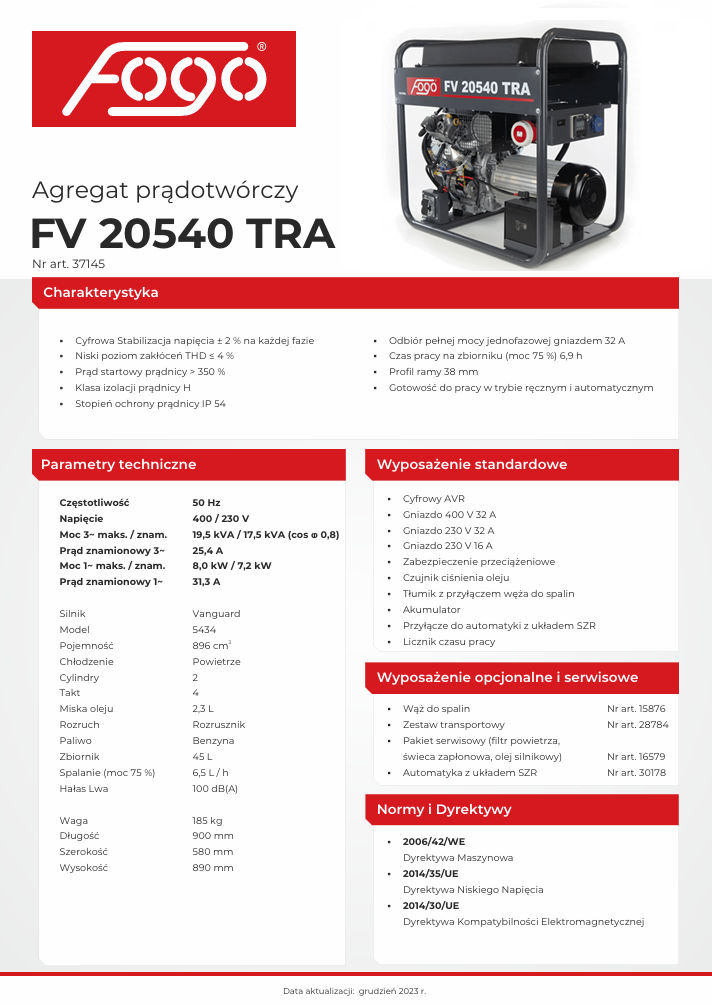 Agregat Prądotwórczy Fogo FV 20540 TRA